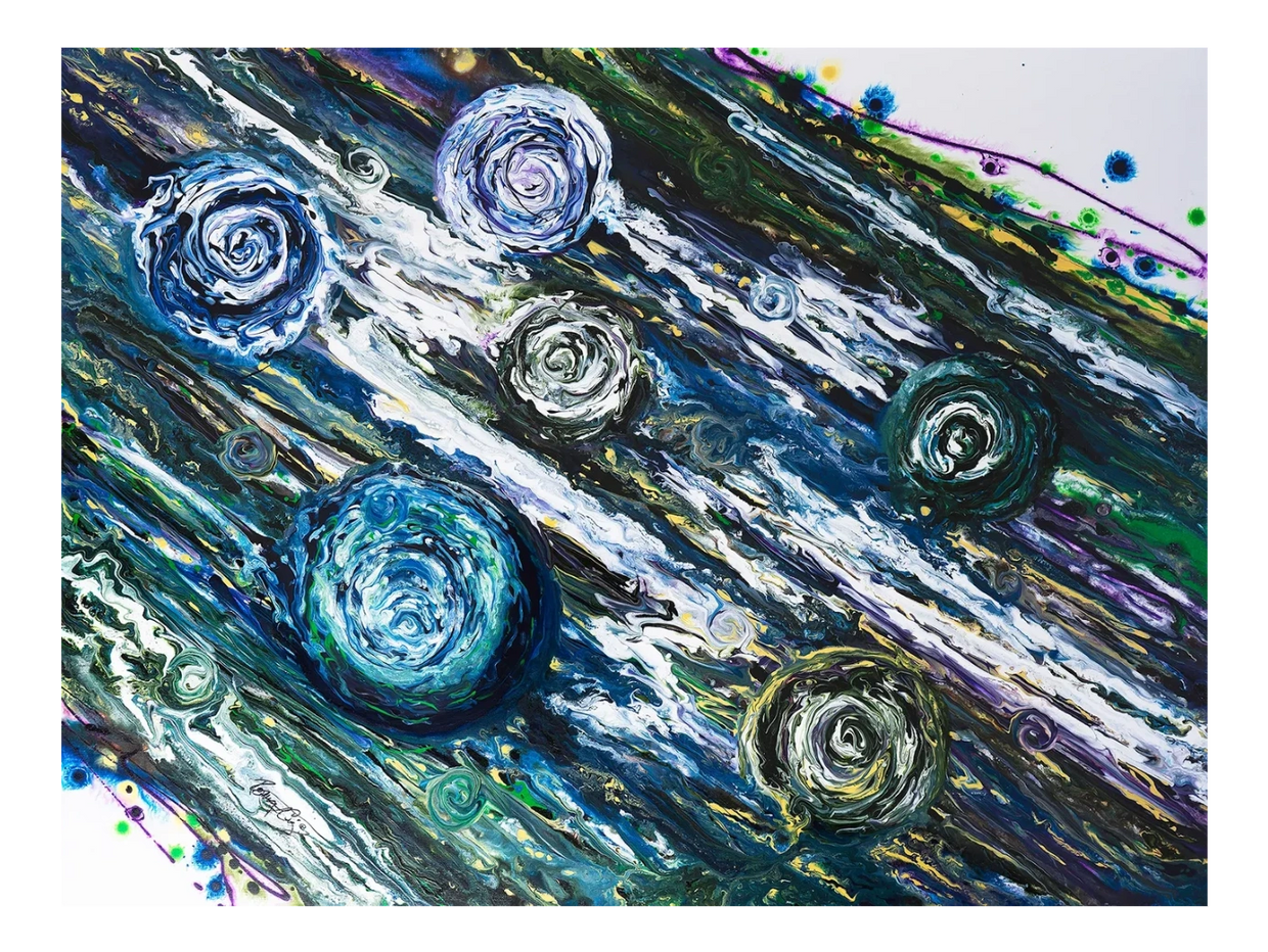 My abstract work is inspired by impressionist studies of things of the natural world. Distractions was born of a study of an eddy in water titled Contrary, and is part of my series of the same name.