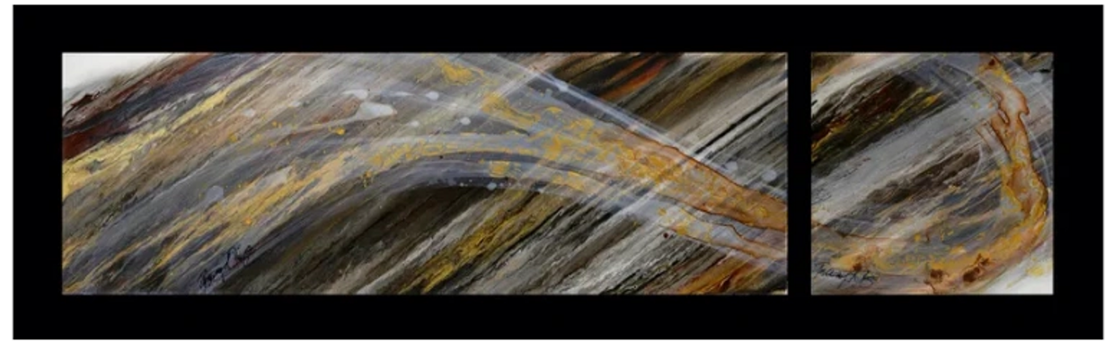 My abstract work is inspired by impressionist studies of things of the natural world. Suggest was born of a study of fast moving water over a bed of rocks, titled Intimation.